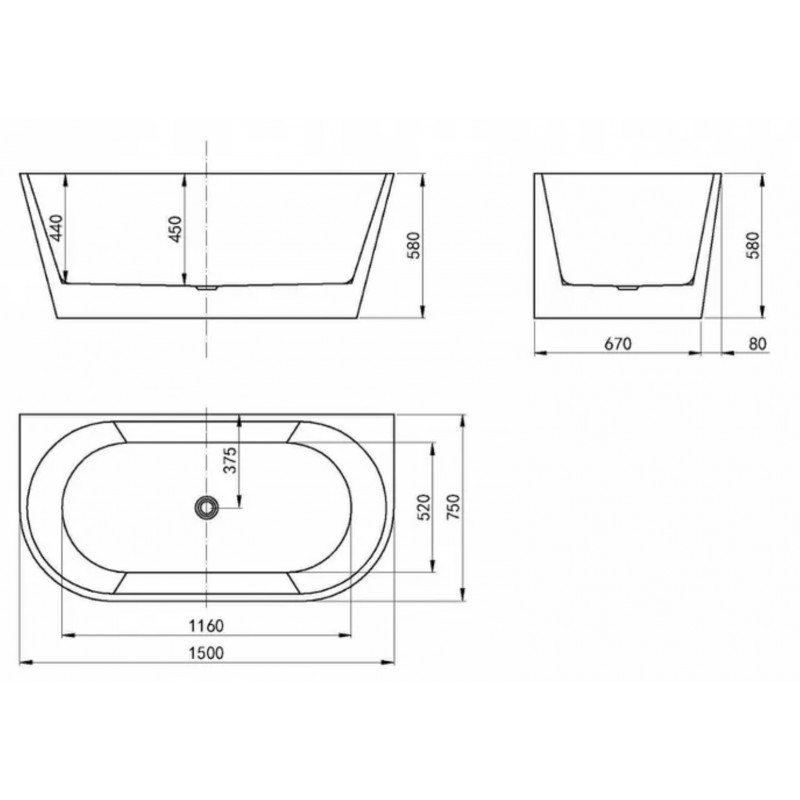 1500 BACK TO WALL BATH ( ROUND)