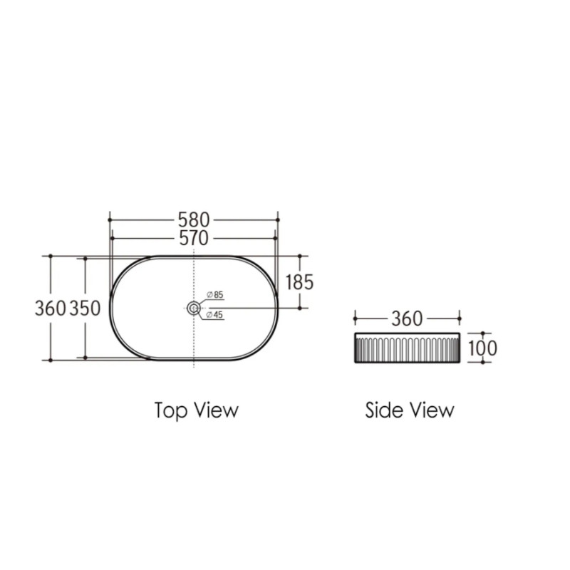 KENSINGTON FLUTED 580X360 OVAL BASIN -OT5836MWCAR