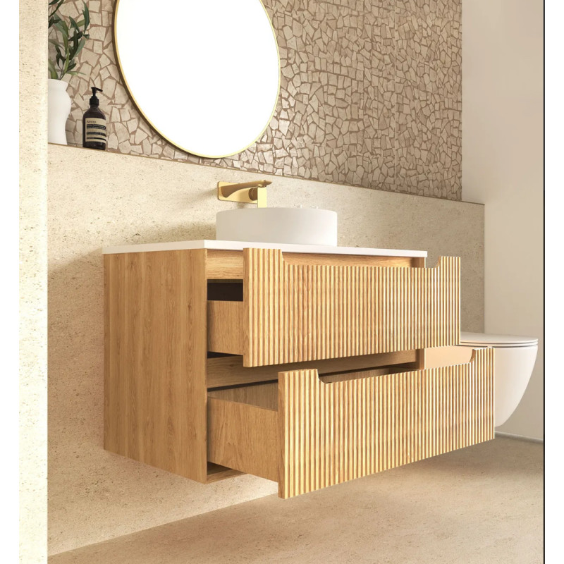 Byron Fluted 900mm Woodland Oak Wall Hung Vanity