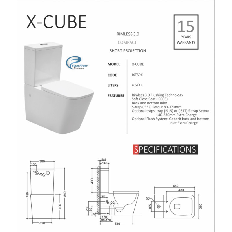 X-CUBE Rimless Back to Wall Faced Toilet Suite