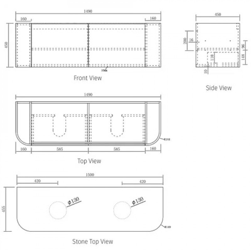 -8% Bondi Natural Oak Curve Wall Hung Vanity -Cabinet 1500x460x450