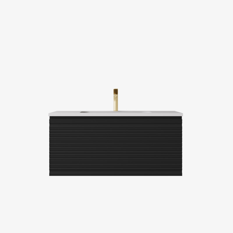 Sedona Fluted Wall Hung Matte Black PVC Vanity 900mm